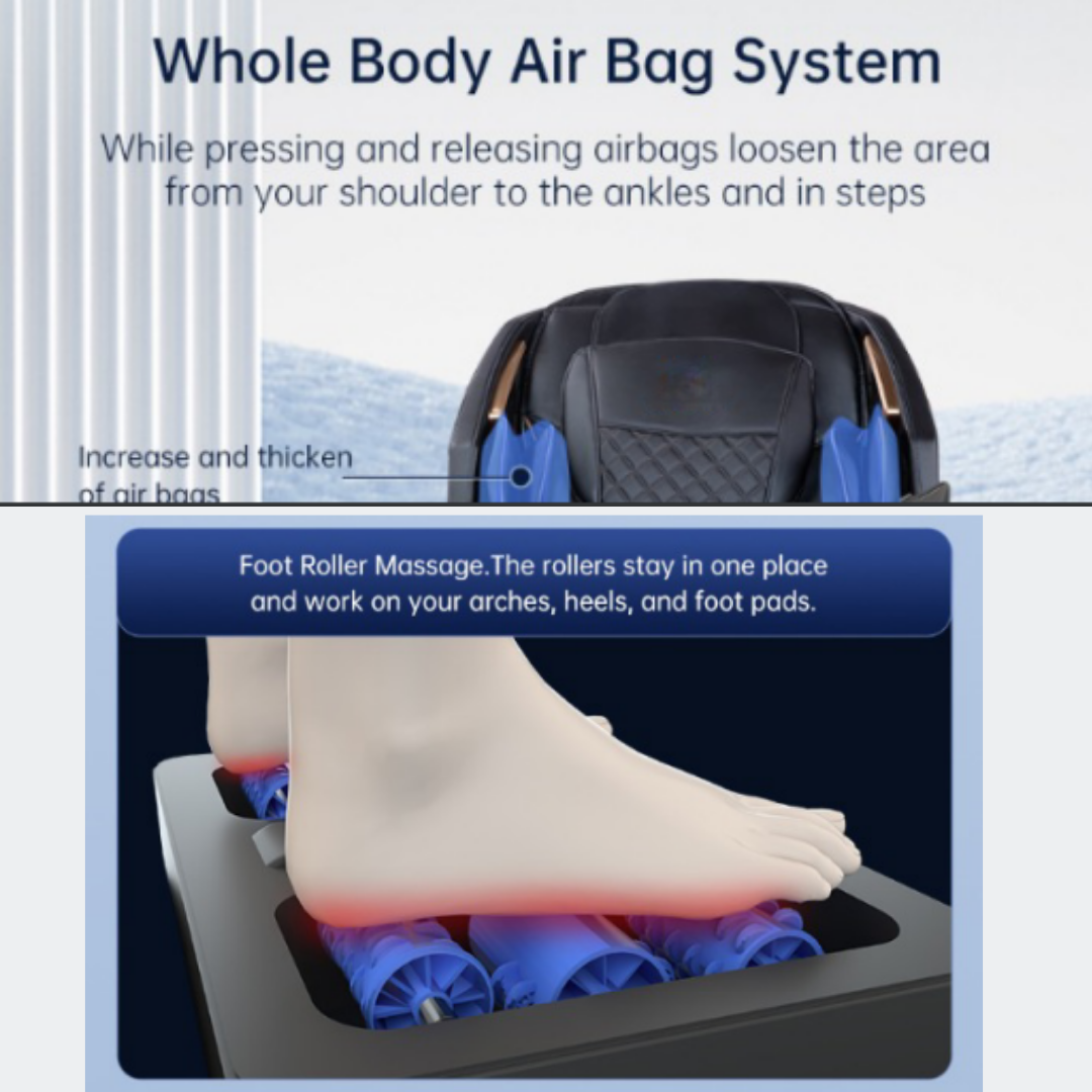 - ✅[9 CORE FEATURES]: Dual Mechanism Roller System, 9 Massage Techniques, Infrared Photoelectric Detection, 147cm Super Long SL Track, Enlarge Air Bags, 24 Auto Programs, Heating Function, AI Voice Command & Calf Rubbing System.